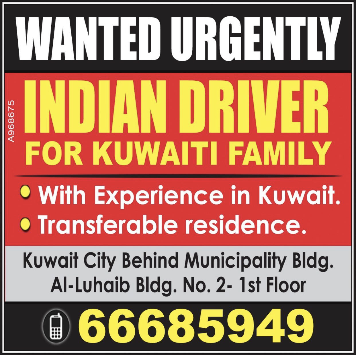 Required Driver Indian Driver for Kuwaiti Family Contact number 66685949