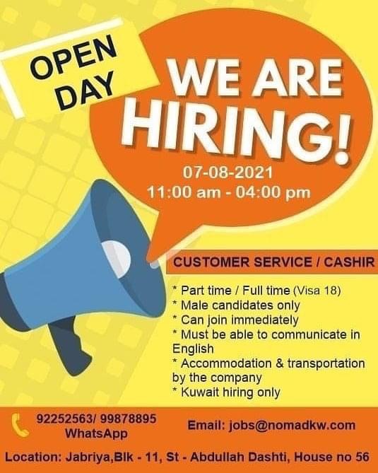 We are hiring Customer service/cashier Male candidate only Accommodation and transportation by company